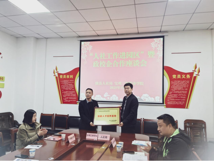 为深入贯彻落实党的二十大关于“强化现代化建设人才支撑”的战略部署,进一步推动产教融合、校企协同育人,促进教育链、人才链与产业链、创新链有机衔接,2025年12月2日,陇县人力资源和社会保障局联合宝鸡三和学院在陇县举行政校企合作座谈会。来自政府相关部门、职业院校及县域重点企业的代表齐聚一堂,围绕“共建合作平台、共育技能人才、共促地方发展”主题展开深入交流,共商合作大计,共绘发展蓝图。