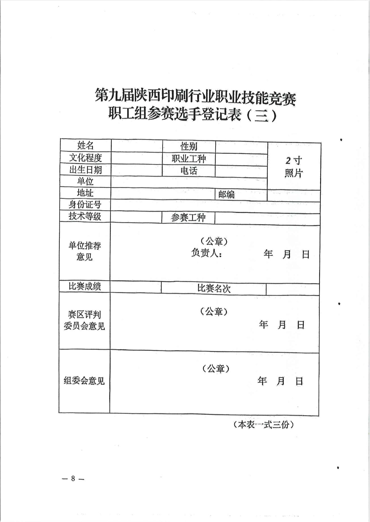 陕西省第九届印刷行业职业技能竞赛报名了